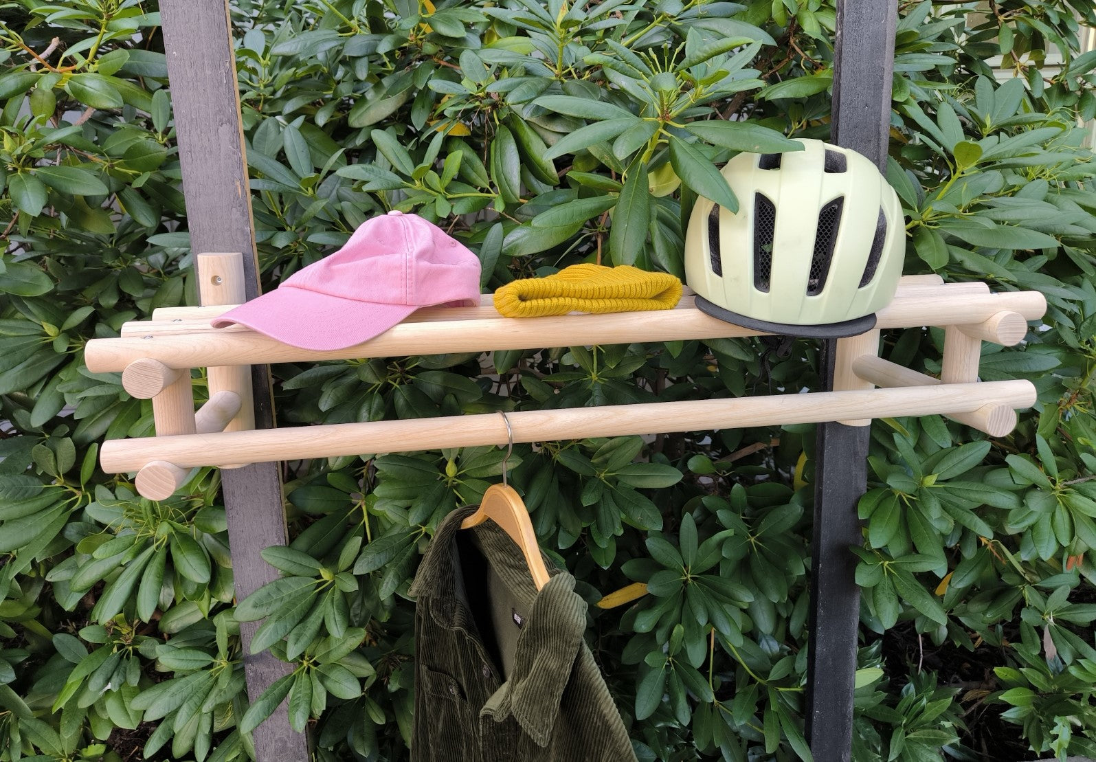 En hatthylla med träkänsla och fint hantverk i tuff och modern design som ändå känns klassisk. Finns i ask, ek eller med målade detaljer och i två längder.