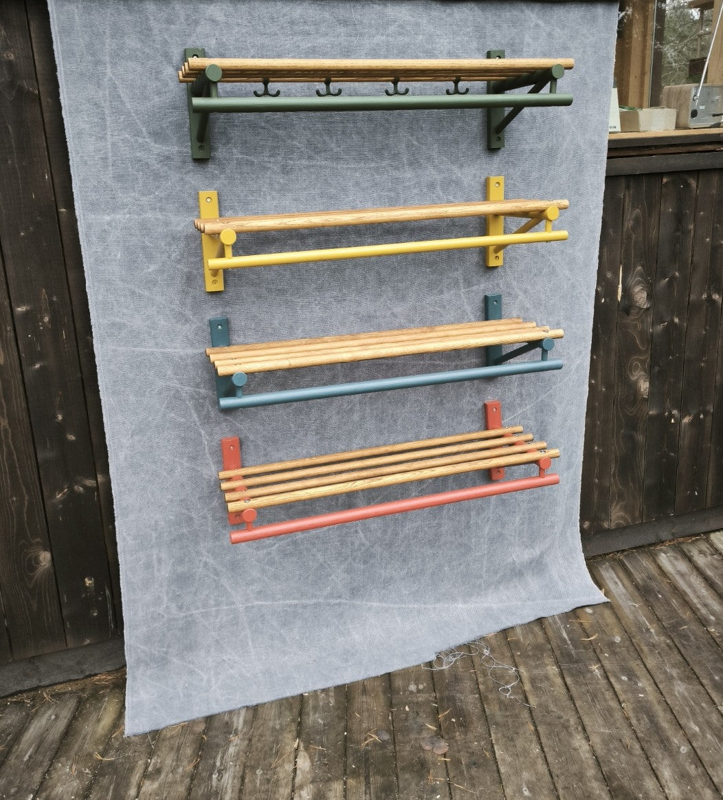 Hatthylla helt i trä med bra pris och många valmöjligheter för längd och färg