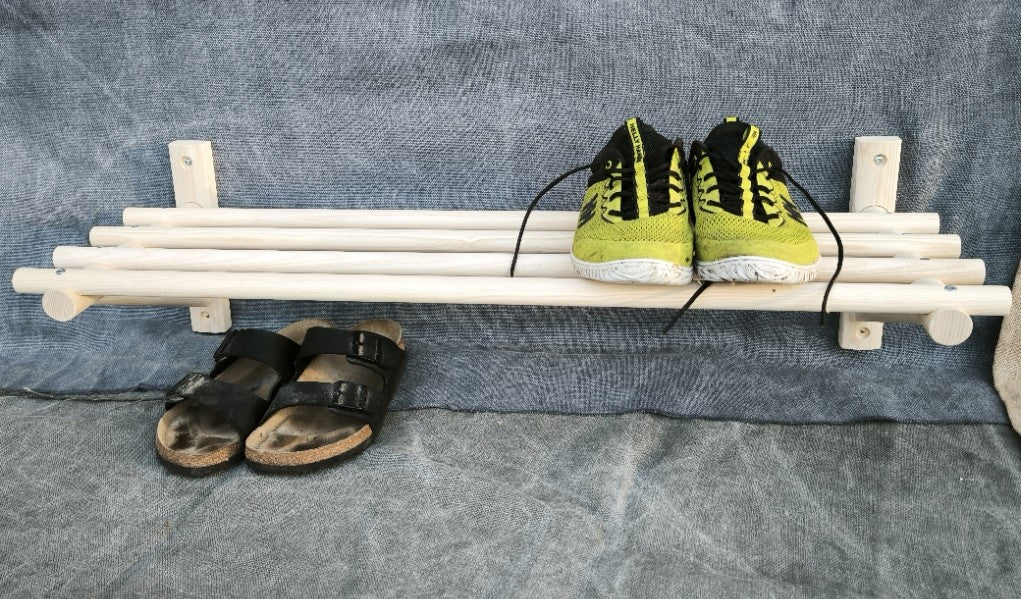 Props skohylla Gröndal är en väggmonterad skohylla i tidlös design som ger karaktär och funktion till din hall. Tillverkad i massiv ask med omsorg och svenskt hantverk.